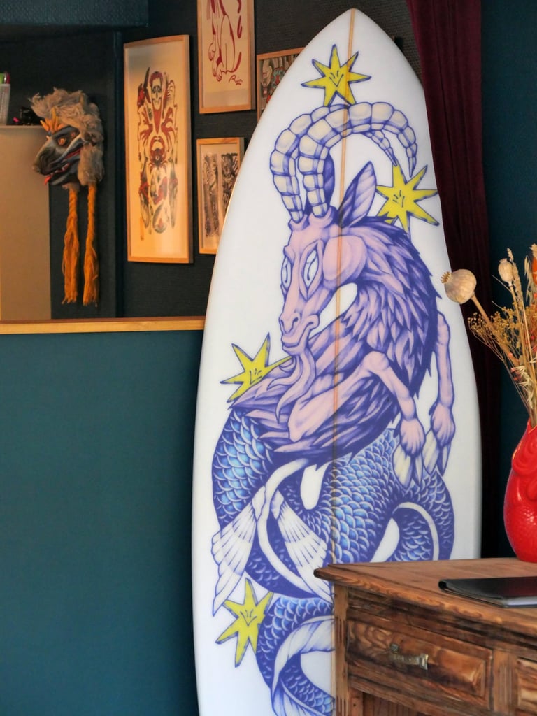Ce projet, c’est un mélange de nos idées, nos techniques, et un peu d’huile de coude. On voulait que chaque planche soit aussi cool à rider qu’à regarder. Disponible sur commande et sur mesure.