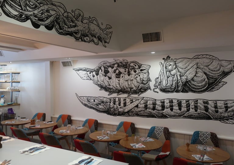 Que ce soit pour des espaces privés, des boutiques ou des projets plus artistiques, chaque fresque est pensée en fonction du lieu et de son ambiance.